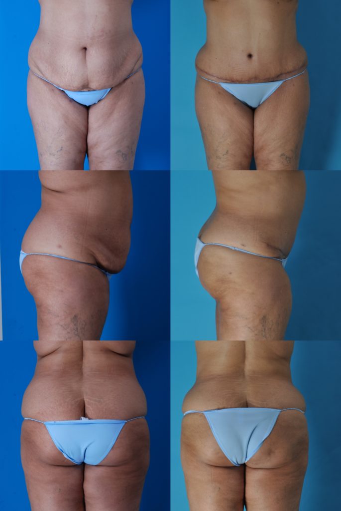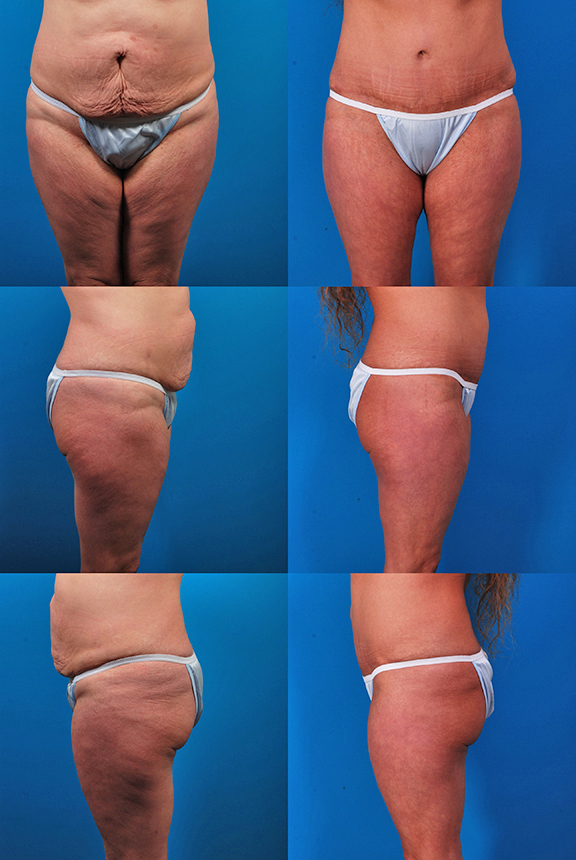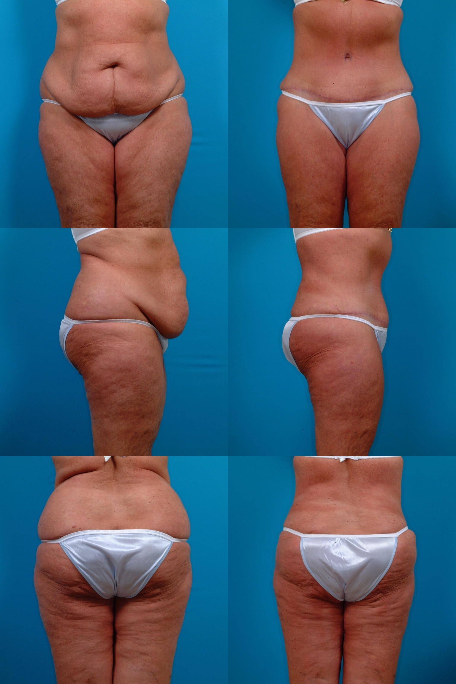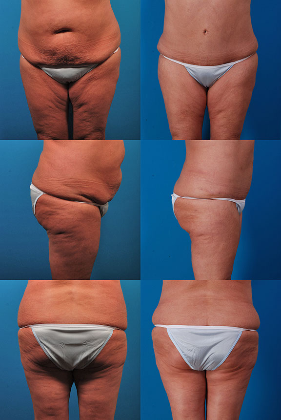 Procedure: Abdominoplasty, plus outer thigh and buttock lift (Lower body lift). Liposuction of abdomen, flanks, and breasts.