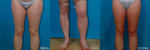 A blood clot in the deep vein of the thigh (“deep venous thrombosis”) is a serious and potentially life-threatening complication of surgery. The risk of a DVT is that a clot may break off, travel to the lungs and cause a pulmonary embolus, which can be fatal. The risk is increased by immobilization of the lower extremities. It can even occur in patients after long plane flights. The risk may be reduced with the avoidance of paralysis (so as to preserve the calf muscle pump) and early ambulation. My patients are turned from side to side during surgery (during the liposuction treatment) to keep the legs mobile. The prone position, which exerts pressure at the hips, is avoided entirely.