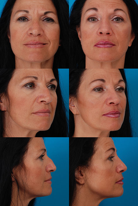 Procedure: First Procedure: Fat injection of lower face (13 cc) and perioral (around the mouth) CO2 laser resurfacing. Second procedure, 15 months later: upper and lower blepharoplasties, facial fat injection (41 cc), excision of forehead skin lesion, full face CO2 laser resurfacing, Botox Cosmetic injection of forehead and crow’s feet.