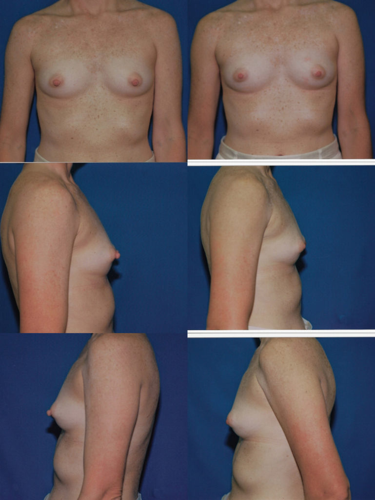 It sounds almost like a contradiction to perform a breast reduction and also use breast implants. Patients might reasonable think, “Doc, my breasts are too big already. Why would I want breast implants?” But patients readily understand that a breast reduction on its own cannot be expected to provide much improvement in upper pole fullness. Repackaging breast tissue in an effort to restore fullness of the upper poles simply does not work. If patients want youthful, convex upper poles without having to rely on a bra, they may consider having small implants inserted simultaneously at the time of their breast reduction. The breasts can still be substantially smaller and not as heavy as they were, but with more volume where it is desirable and much less where it is not. This is an application of the same minus-plus principle discussed previously in the section on breast lifts with implants.
