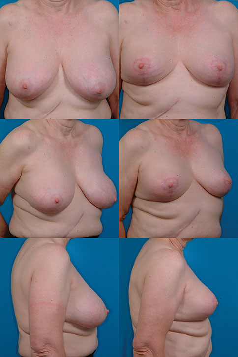 This is the most common complication of a breast lift or reduction. It is usually caused by inadequate removal of breast tissue from the lower pole of the breast, so that there is a persistent bulge of the lower pole, which one surgeon (Flowers) colorfully calls the “mastopexy-wrecking bulge.” This problem is common among patients treated with “skin-only mastopexies” because the skin stretches readily and cannot hold the breast shape. It is also commonly found in patients treated with “periareolar” or “donut” mastopexies because these techniques do not allow removal of breast tissue from the lower pole. They do avoid a vertical scar, leaving just the scar around the areola, which is the appeal of these limited-incision techniques, but this benefit is outweighed by the inability of these techniques to adequately tighten the lower pole and provide a lift. The vertical method provides the best breast elevation and the most conical (“tight”) lower pole shape. (Swanson E. A retrospective photometric study of 82 published reports of mastopexy and breast reduction. Plast Reconstr Surg. 2011;128:1282–1301.)