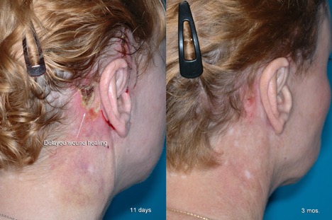 Our survey showed that 98% of patients were satisfied with their facelift scars (Swanson E. Outcome analysis in 93 facial rejuvenation patients treated with a deep-plane facelift. Plast Reconstr Surg. 2011;127:823-834). This high degree of scar satisfaction is reassuring, and allows the surgeon to use the procedure to maximum effect without being preoccupied by concerns about scarring.