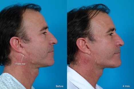 “Short scar” procedures have an obvious marketing appeal. After all, who doesn’t want less scarring? The short scar facelift reduces the length of the scar behind the ear and may suffice in younger patients. But Dr. Daniel Baker, the author of this technique, cautions that older patients with loose neck skin are not appropriate candidates. Limiting the scar behind the ear may compromise the degree of neck skin tightening that may be achieved. Also, the abbreviated postauricular scar may cause skin puckering behind the ear (“dog ear”), a visible stigma of surgery. Further, only the portion of the scar that is normally well-hidden behind the ear is shortened. The more conspicuous portion of the facelift scar, in front of the ear, remains the same. When combined with an extended temple incision, the scar cannot be considered short.