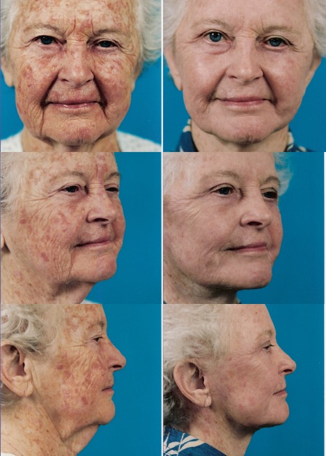 Facelift, submental lipectomy, and laser skin resurfacing.