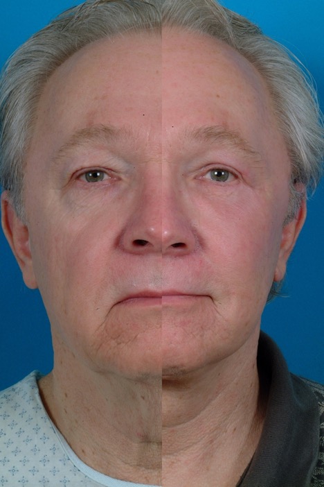 Procedure: Facelift, submental lipectomy, biopsy of multiple facial skin lesions, and CO2 laser resurfacing.