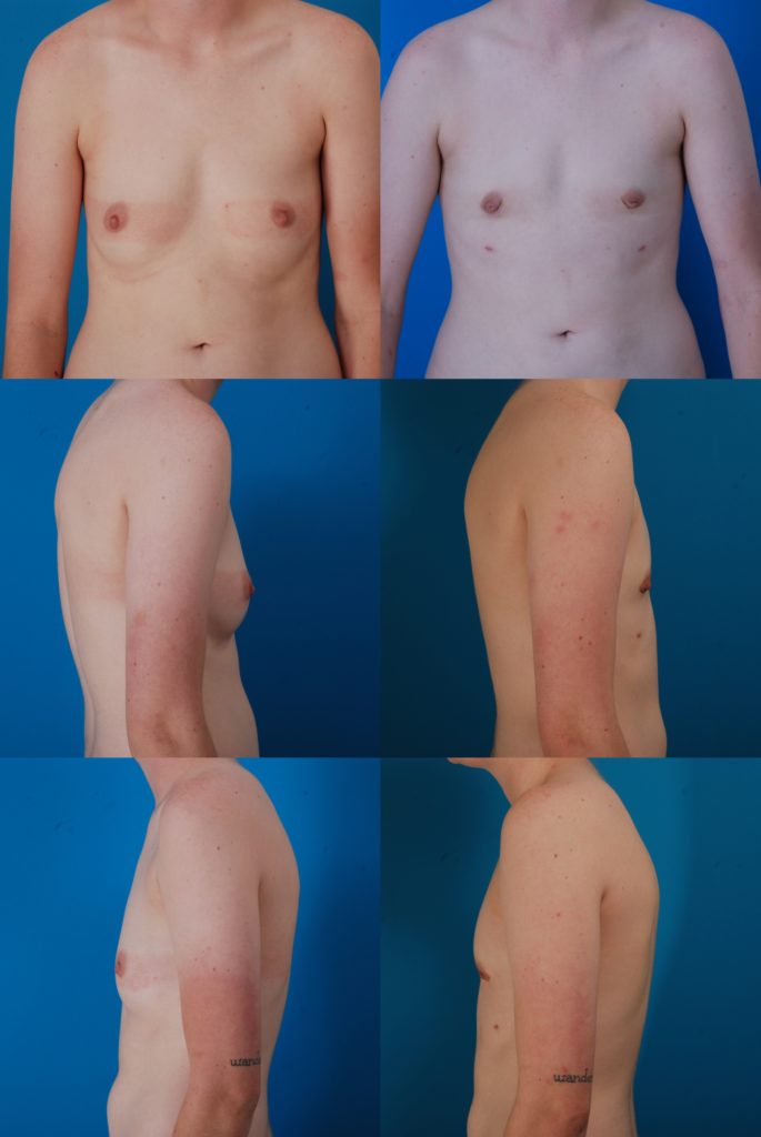 These patients wish to remove unwanted breast tissue. Typically, they spend time every day wrapping the breasts and using binders. They are very self-conscious about this part of their anatomy that is not consistent with their self-image. Fortunately, surgery can correct this problem. Most patients are comfortable with their shirt off after surgery. Patient satisfaction tends to be very high.