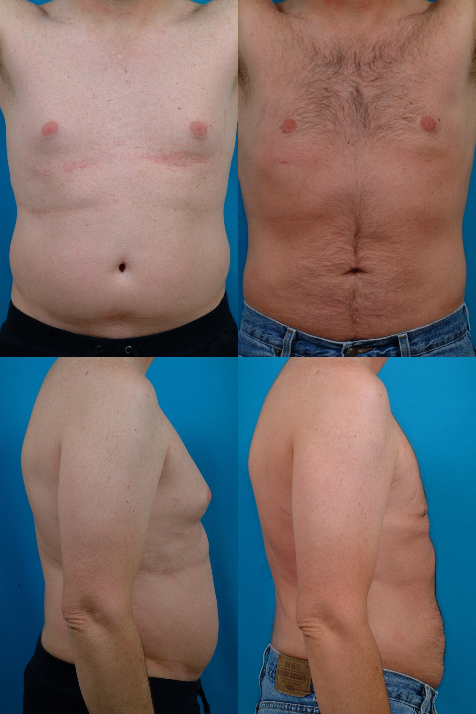 Procedure: Direct tissue excision and liposuction of chest, abdomen, flanks, and axillae. This patient underwent addition liposuction of his abdomen, flanks and chest 5 month later.
