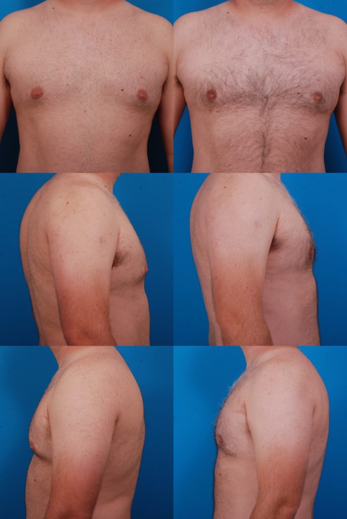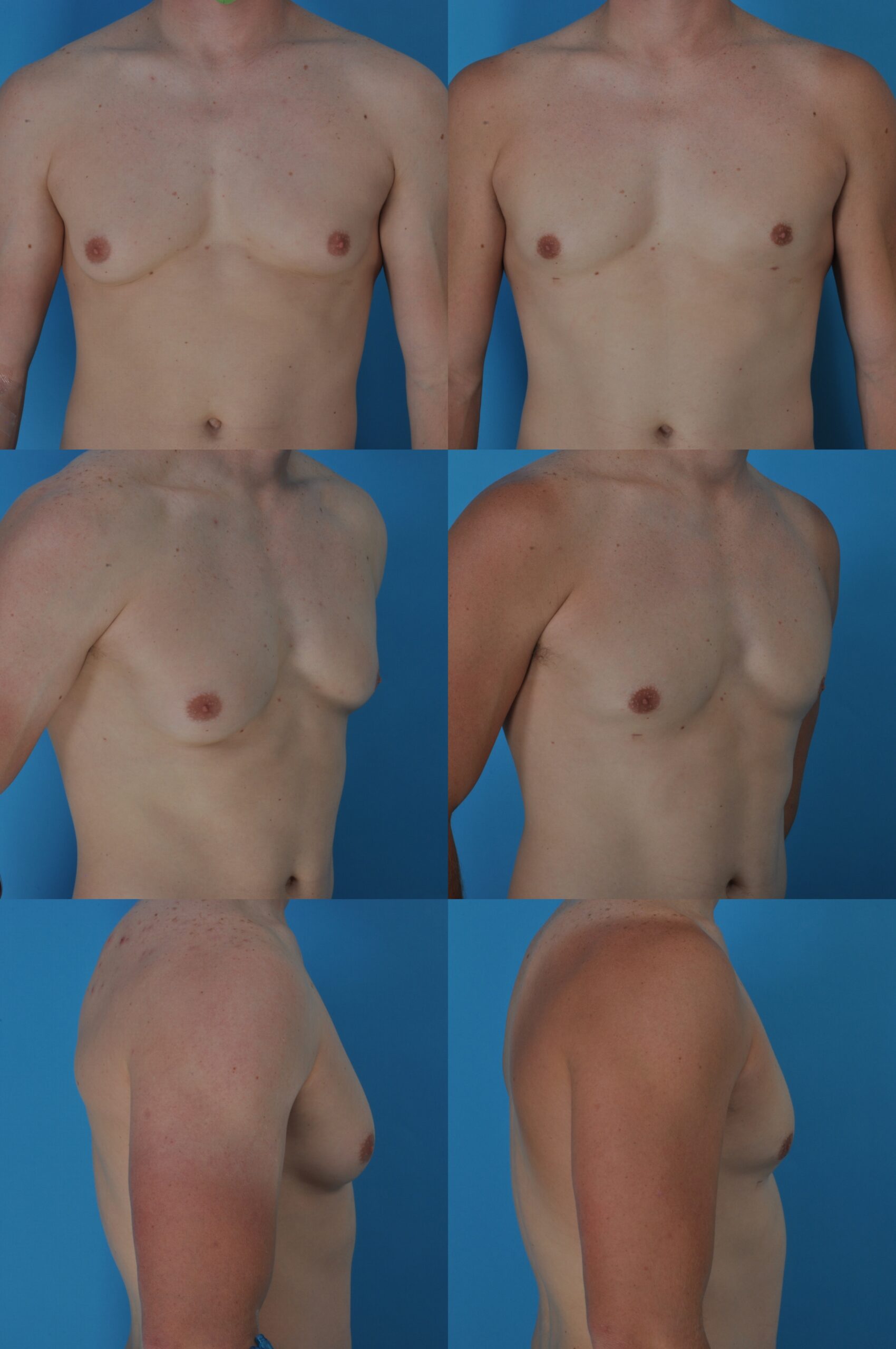 It is important to note that subcutaneous mastectomies remove breast tissue, not skin. If the breasts are particularly large and the skin loose (which may happen after massive weight loss), it may be necessary to remove skin at the same time as breast tissue. While this is done commonly in women as part of a breast reduction, skin removal is usually not required in men. Although the skin may not be as tight as we’d like, it contracts to some extent, and the result is usually acceptable and avoids the additional scarring that would result from a skin excisional procedure.